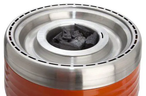 Allgrill Holzkohlegrill Vulcano in orange. Multifunktionaler Holzkohelgrill mit zwei Grillaufsätzchen und Transportttasche. Ohne Dreibeinständer.