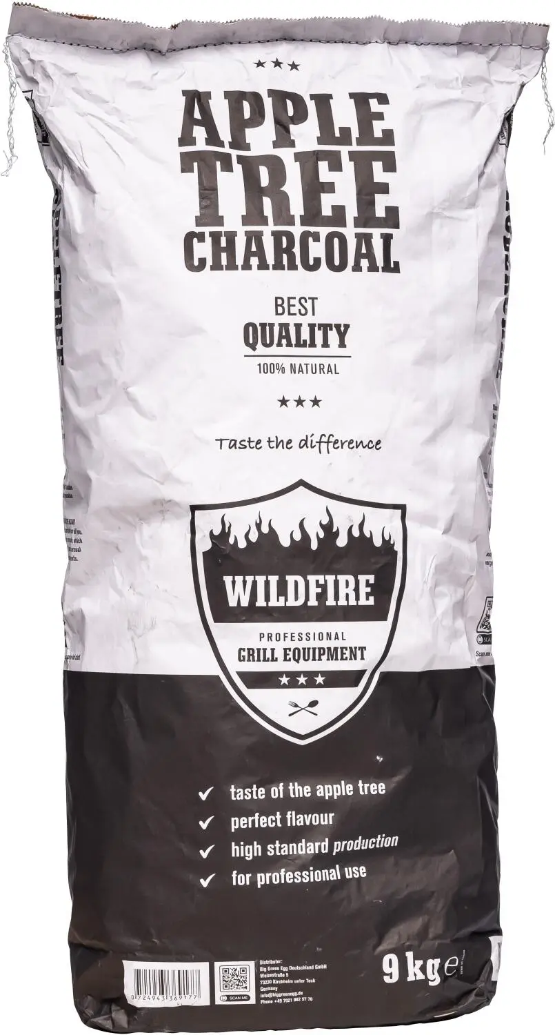 Big Green Egg Aroma Holzkohle Wildfire vom Apfelbaum, 9 kg. Hochwertige Holzkohlestücke aus Apfelholz sorgen für bestes Aroma und gute Brenneigenschaften.