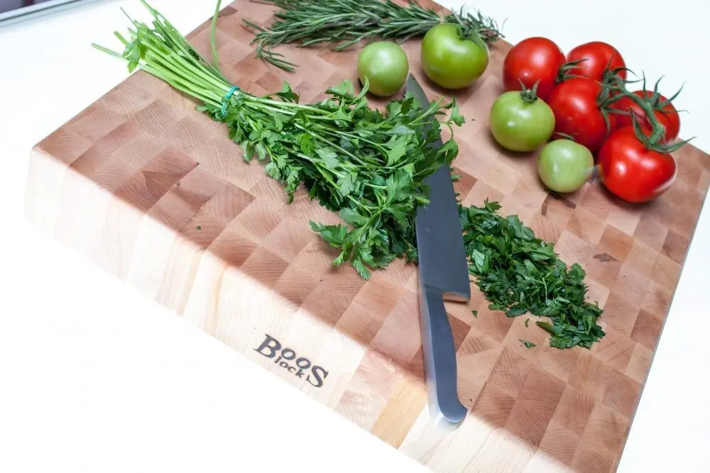 Boos Blocks® Hackbretter sind aus Stirnholz, zeichnen sich durch eine robuste Oberfläche aus und schonen die Messerschneide.