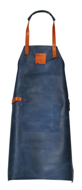 Tragen Sie sie mit Stolz: die Mr. Smith Lederschürze Blau mit Tasche. Die Schürze besteht aus Spaltleder. Reines Handwerk, das viele Jahre hält. Sie haben die Schürze benutzt? Kurz mit einem feuchten Tuch abwischen und sie ist wieder einsatzbereit.