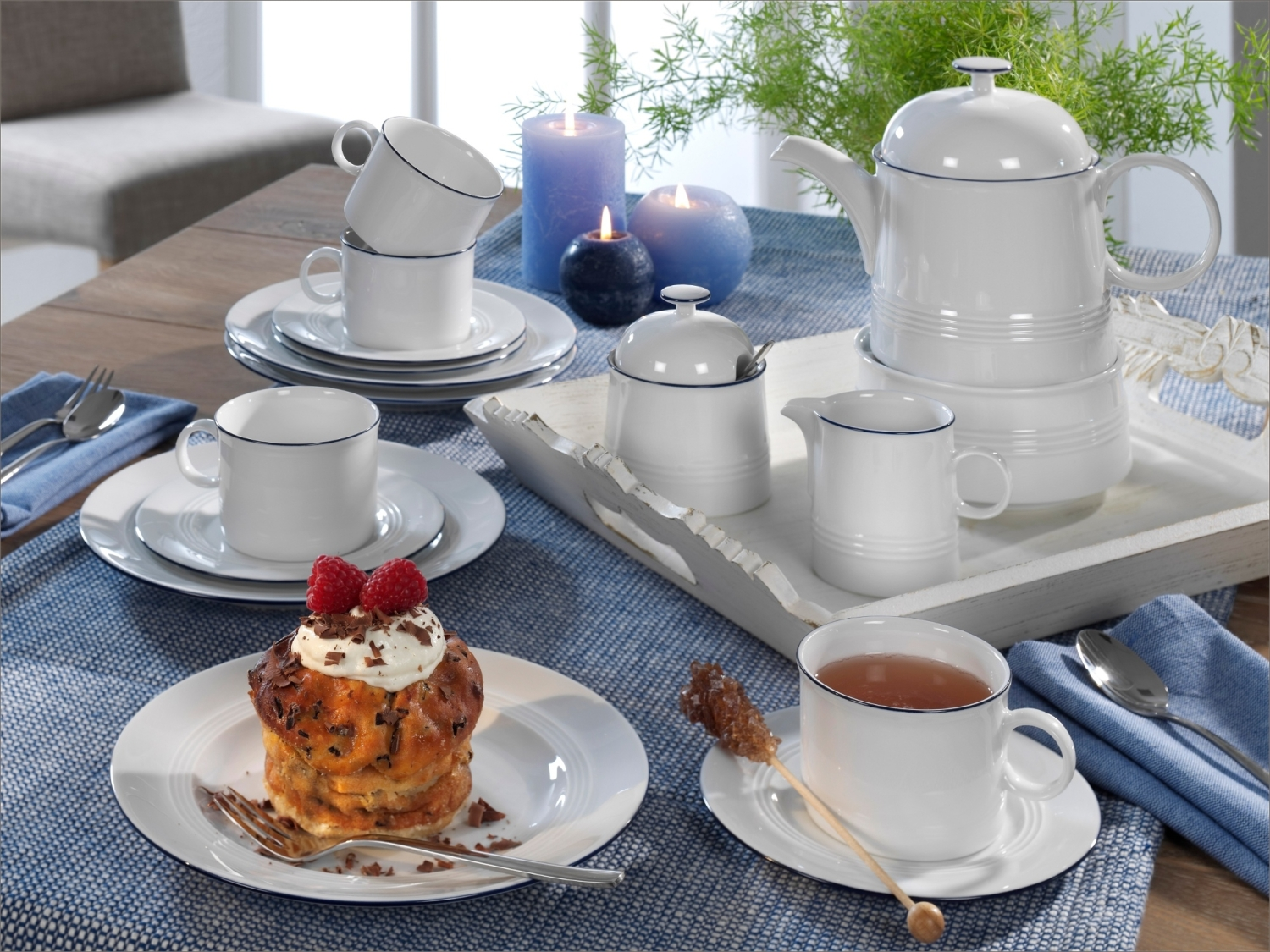 Die Serie Jeverland „Kleine Brise“ von Friesland bietet jeden Tag ein bisschen Urlaubsgefühl. Atmosphäre aus dem Nordseeurlaub, egal, wo man ist oder trinkt. Der zeitlose Klassiker bringt maritime Stimmung auf dem Tisch und überzeugt mit qualitativ hochwertigem Porzellan made in Germany.