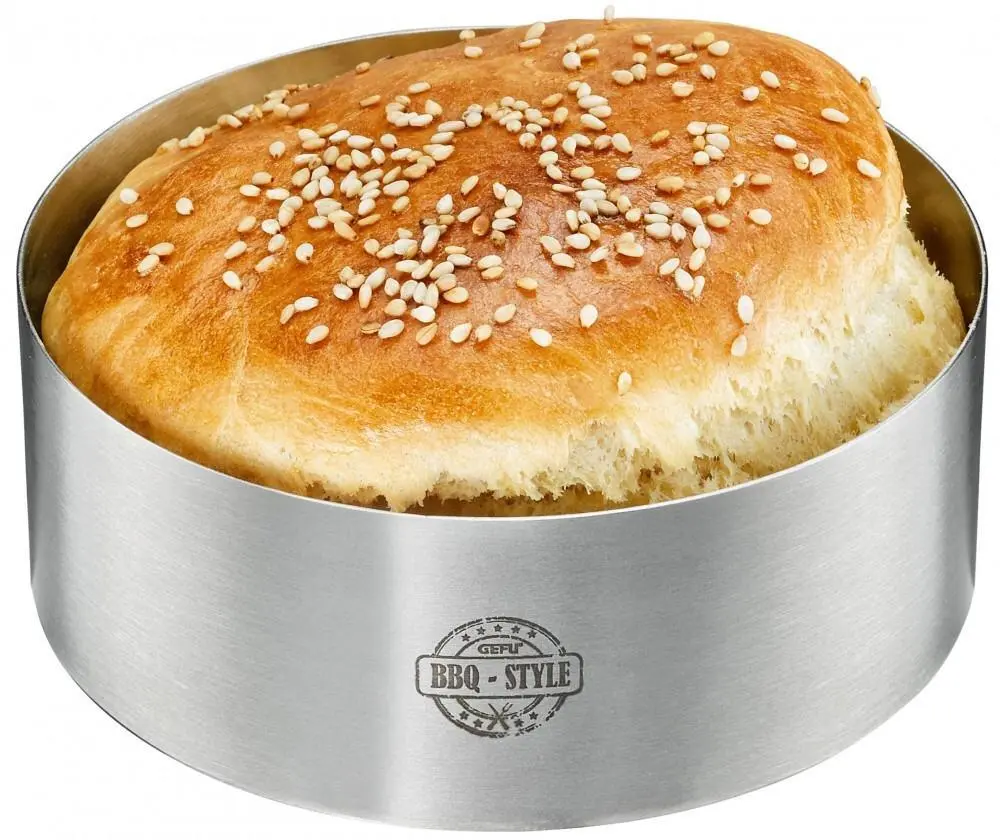 GEFU Burger-Ring BBQ. Selbstgebackene Burger-Brötchen werden mit diesem Burger-Ring in Form gebracht.