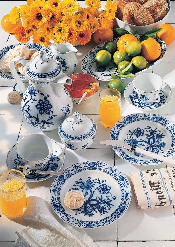Kahla, schmeckt gleich noch mal so gut. Kleine Besonderheiten wie der stilisierten Rosenknospe, der bogenförmige Rand und der floral geschwungene Henkel, sind eine tägliche Freude für das Auge. Die intensive blaue Farbe – ihr Geheimnis liegt in der Verwendung von Kobaltoxid – weckt die Lebensgeister. Da kann das Frühstück mit dem Zwiebelmuster von Kahla schon mal bis zum Mittag dauern.