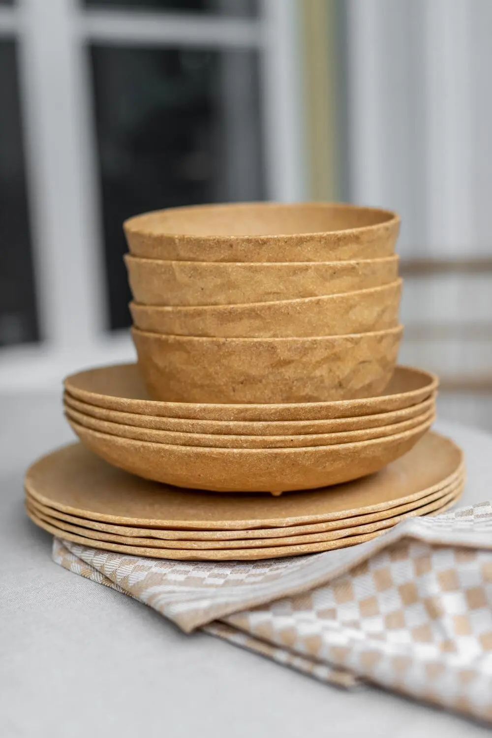 koziol Teller groß, 4er-Set in wood. Ideal für die Verwendung Outdoor, sei es im Garten, beim Camping oder beim Picknick.