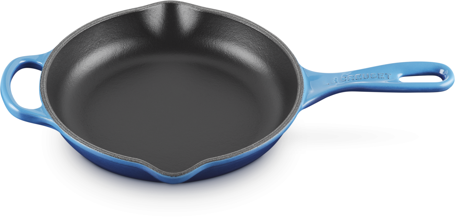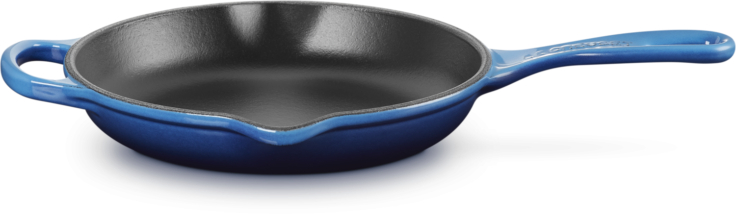Le Creuset Pfannen aus Gusseisen zeichnen sich durch eine gleichmäßige Wärmeverteilung und eine hervorragende Wärmespeicherung aus. Einmal erhitzt, bleiben Le Creuset Gusseisenpfannen lange heiß. Das Bratgut kann selbst bei schwacher Hitze mit niedrigem Energieverbrauch in der Le Creuset Gusspfanne gebraten werden. Le Creuset Pfannen aus Gusseisen sind ideal zum scharfen Anbraten von Fleisch oder Gemüse. Kurzgebratenes erhält außen die richtige Bräune und bleibt innen saftig. Kein anderes Material brät so kross!