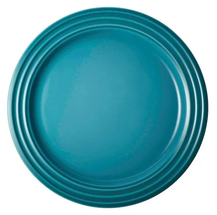 Le Creuset Frühstücksteller in karibik. Der Teller eignet sich sowohl als Frühstücksteller als auch für die nachmittägliche Kaffeetafel.
