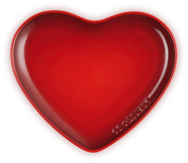 Le Creuset Herzteller in kirschrot. Dekorativer Teller in Herzform perfekt als Geschenk oder einen ganz besonderen Anlass!
