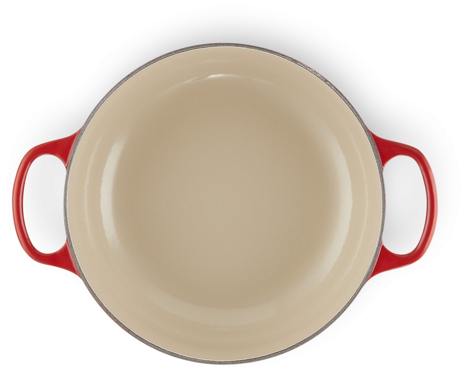 Die Bistros von Paris sind nicht ohne Grund voll roter Akzente. Die Farbe ist klassisch – ihr Reiz überdauert Generationen. Das zeitlose Kirschrot ist eine Hommage an das französische Erbe von Le Creuset. Es erinnert an die kräftigen, dunkelroten Weine der Rhône und an Marktkörbe voll saftiger, rubinroter Kirschen.