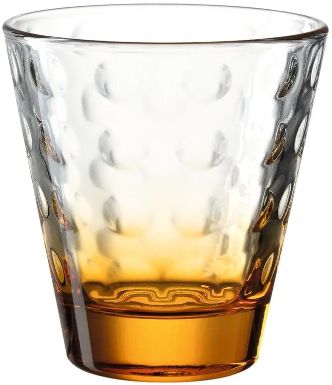 Sichern Sie sich mit diesem geschmackvollen Trinkglas aus der Serie OPTIC Genussmomente. Mit seiner konischen Form betont dieses Trinkglas einen frischen und anregenden Stil. Mit dem orangenen Lack kommt ein tolles Lebensgefühl in Ihr Zuhause! Gestalten Sie sich das tägliche Leben ganz nach Ihren Wünschen und belohnen Sie sich mit dem, was Ihnen gefällt – mit LEONARDO. Dieses Trinkglas ist spülmaschinengeeignet. Mit COLORI entwickelte LEONARDO eine neue Farbrange, die durch moderne Farben und eine hohe Widerstandsfähigkeit der Produkte glänzt. Erleben Sie die schönen Farben, die durch die langlebige und lichtechte Hydroglasur auf das Produkt gezaubert wurden. Nicht nur die Qualität der Produkte profitiert durch die hochwertige, ausschließlich in Deutschland produzierte Hydroglasur – sie sind auch für das Auge ein Genuss. Für alle, die Wert auf Qualität legen – bestellen Sie am besten jetzt und verschönern Sie sich Ihre vier Wände mit diesem ansprechenden orangenen Trinkglas.
