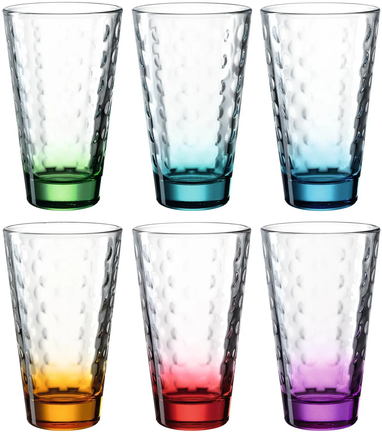 Mit dem exklusiven Trinkglas aus der Serie OPTIC genießen Sie Ihr Getränk noch mehr. Farbige Gläser verleihen jedem Tisch etwas Besonderes. Ob leicht pastellig oder intensiv: Farben haben eine Wirkung auf unsere Stimmung – Farben machen das Leben bunter. Dieses konisch geformte Trinkglas ist ein absolutes Must-Have. Gestalten Sie sich das tägliche Leben ganz nach Ihrem Geschmack und belohnen Sie sich mit dem, was Ihnen gefällt – mit LEONARDO. Noch mehr Farbe bringt COLORI in Ihr Zuhause. COLORI ist das Zeichen von LEONARDO für veredelte Glasserien mit Hydrolack. Die moderne und lichtechte Hydroglasur wurde speziell für den Einsatz auf Gläsern und Tafelgeschirr entwickelt und wird ausschließlich in Deutschland produziert. Profitieren Sie von der hohen Widerstandsfähigkeit der COLORI Produkte im Alltag! Das Trinkglas der Serie OPTIC ist zudem spülmaschinengeeignet. Hier erhalten Sie 6 farblich sortierte Trinkgläser. Am besten nicht länger warten! Kommen auch Sie in den Genuss dieses wunderschönen violetten Trinkglases! Auch als Geschenk eine ausgezeichnete Wahl!