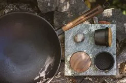 Skeppshult werden keinerlei Farben oder andere Chemikalien verwendet. Die Pfannen werden ab Werk mit Rapsöl eingebraten. Das verleiht den Pfannen eine schöne schwarze Farbe und bietet einen ersten Antihaftschutz. Ansonsten verfügen die Pfannen über keine weitere Beschichtung. Sie braten also auf purem Gusseisen. Vor dem ersten Gebrauch der Pfannen bedarf es keinerlei Vorbereitungen. Es empfiehlt sich lediglich ein kurzes Ausspülen mit heißem Wasser, um Staub und Produktionsrückstände zu entfernen.