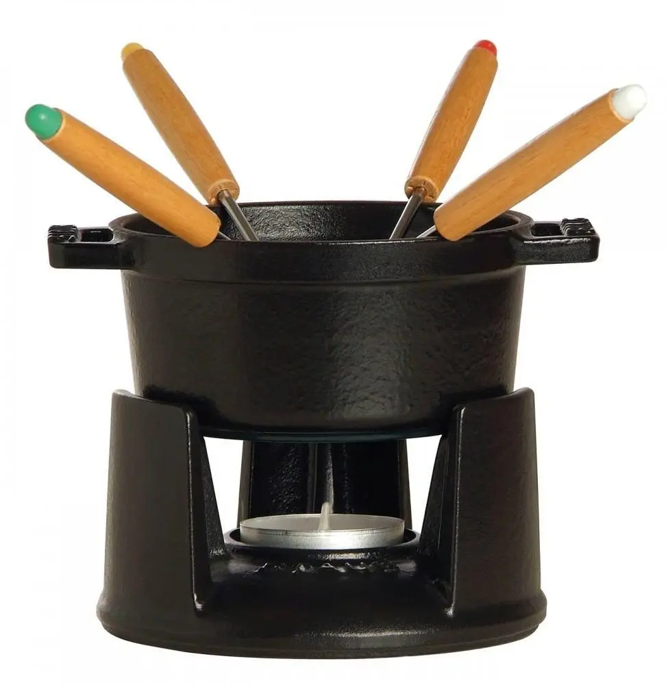 Eigenschaften des Staub Mini Schoko Fondueset aus Gusseisen: